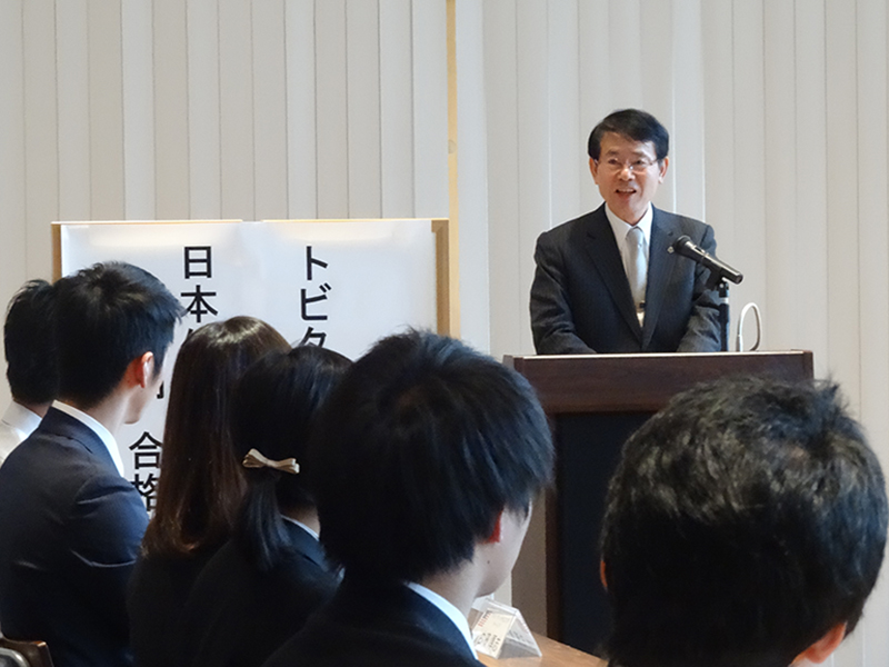 ![]() 激励の言葉を述べる久保総長 |