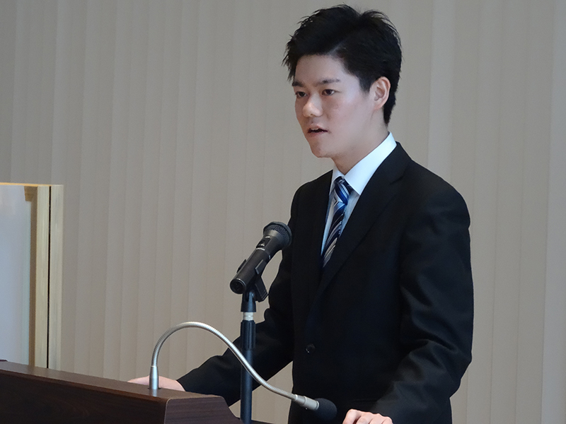 ![]() 留学計画を発表する渡邉航大さん |