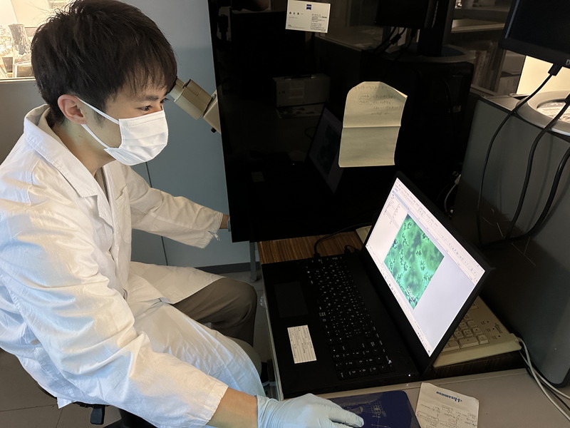 顕微鏡を用いた研究の様子
