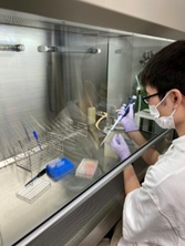 実験ではin vitroで細胞を用いて、それをFACSで解析するのが主体でしたが、様々な手技の経験をさせて頂きました。大腸菌の形質転換によるBCRの発現、FACSによる解析やセルソーティング、電気泳動、レトロウイルス感染によるCARの導入、マウスの解剖などを行い、今後の研究室配属の基礎基本を学べたと思います。今回の配属期間の6週間では、多くの実験をこなしました。最初はかなり一個一個の作業がぎこちなく、時間がかかっていましたが、徐々に慣れていき、一人でできるようになったのは嬉しかったです。午前中は解析して、午後には複数の実験の仕込みをするような感じのスケジュールで、複数の実験を同時並行で進めているので、何の実験をしているのか混乱することも多かったですが、先生に丁寧に教えて頂き、無事に終えることができました。やっている実験の原理と結果を理解するのに精一杯で、忙しい毎日でした。実験は開始直後から、当初の予想とは全く違う結果が出続けたことで、今見ている現象は何であるかの解釈が難しく、アーチファクトによるものなのか、環境が悪かっただけなのではないか、原因となる因子は何なのかなどと色々なことを考える必要があったことが一筋縄には行かない厄介なところであって、研究にはいつでもついて回るそれらへの対処は難しさもありつつ、やりがいがありました。また、実験にいつ見切れをつけるのかの判断も含めて、研究の厳しさの一端を早々にして実感することになりました。