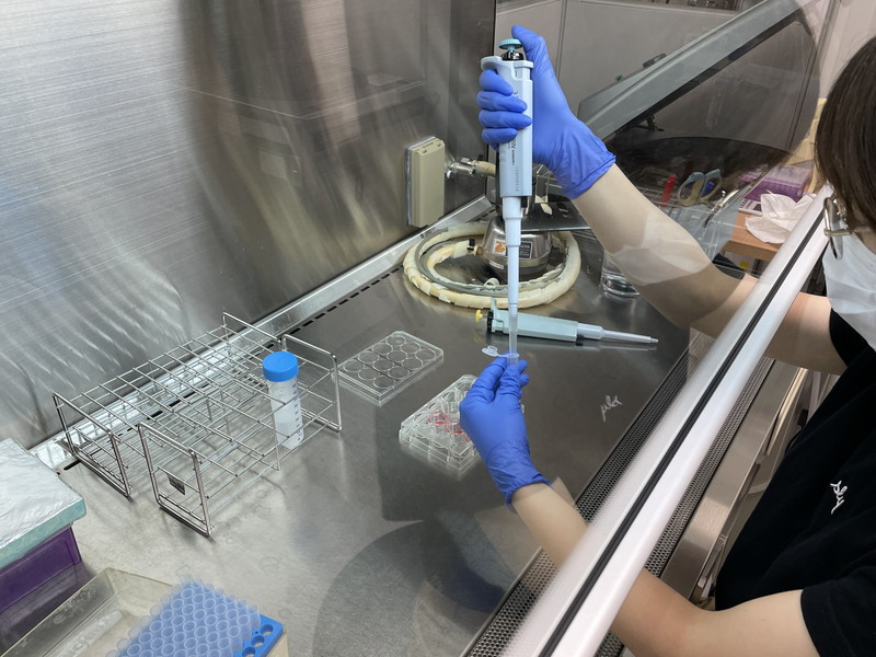 今回の研究室配属で、私は医学研究院ウイルス学分野でお世話になりました。当研究室では麻疹ウイルスが神経病原性を発揮するメカニズムについて研究を行っています。私はウイルスがどのように病原性を発揮するのかについて興味を持っていたため、当研究室への配属を希望しました。