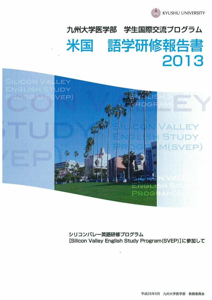 平成24年8月27日(月)~9月21日(金)に実施された「シリコンバレー英語研修プログラム(SVEP)」の冊子「九州大学医学部 学生国際交流プログラム 米国 語学研修報告書 2013」が、発行されました。