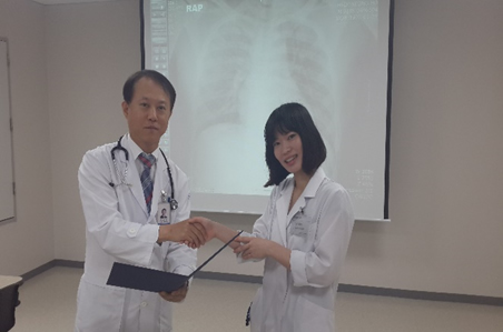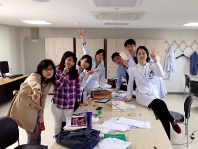 先生方は、朝のプレゼンテーションや、レクチャーを英語で行ってくれることが多く、そうでないときには学生が後で訳して教えてくれたので、大変助かりました。私は英語力に自信が無く不安でしたが、先生方や学生はときにはジェスチャーや図を用いて私がわかるまで丁寧に教えてくれました。私が感心したのは、韓国ではメディカルタームは全て英語で学習しており、実習の総括として行うケースプレゼンテーションのスライドも全て英語で行っていることでした。4週間そのような環境にいたことで、医学英語に多く触れることができ、私も実習前よりはメディカルタームが定着してきました。また、強要されずとも、課題の解決にあたってuptodateなどを活用し英語の論文を読むことが習慣になっており、その点も日本の学生とは異なると感じ、見習いたいと思いました。