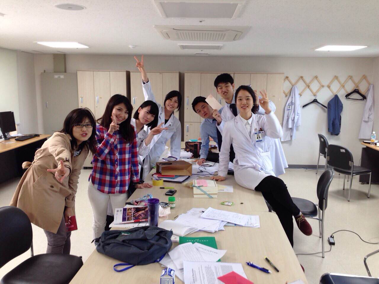 それから、幸運にも小児科には日本語が堪能なレジデントの先生がいて、空き時間に話し相手になってくれたので、日本と韓国の診療体制や入局システムの違いなどの医療の話から日本のサブカルチャーや韓国のトレンドまで、いろんな話ができました。また、小児科には学生はいませんでしたが、病院の上層階に学生用の部屋が一室あり、そこに行くと学生たちがいておしゃべりを楽しむこともできました。