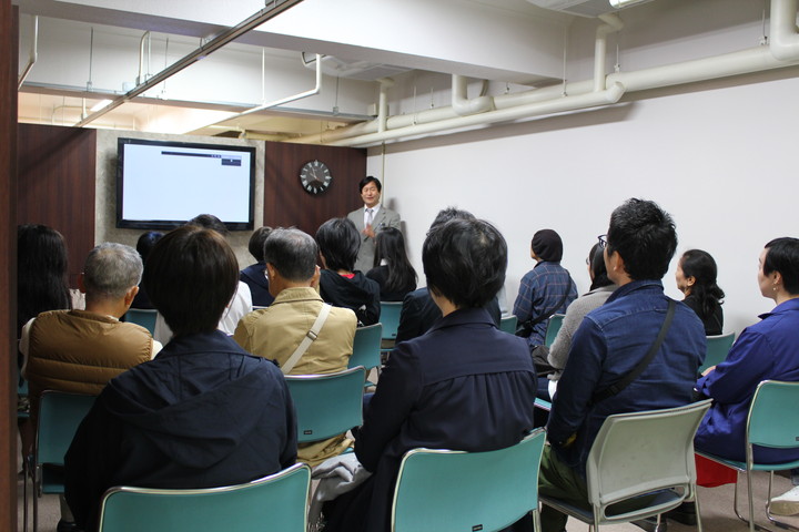 はじめに視聴覚エリアにて神経病理学分野 岩城教授より開催内容の概要説明があり、参加者に病理学が担う役割について説明したDVDを鑑賞して頂きました。