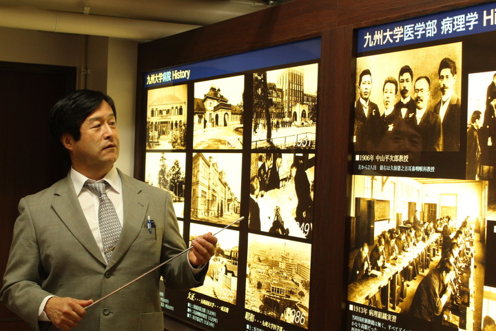 九州大学医学部病理学教室は明治37年の発足以来、約110年の年月をかけて、6,000体を超える病理解剖摘出臓器の肉眼臓器標本を作製してきました。2005年の西方沖地震による破損や劣化で火葬を余儀なくされたものを除き、現在は約1,300体を所有しています。標本の中には医学、医療の発展により、今では見ることのない病態も含まれており、標本の医学教育への活用と継承を目的として、平成22年4月に人体・病理ミュージアムが設置されました。