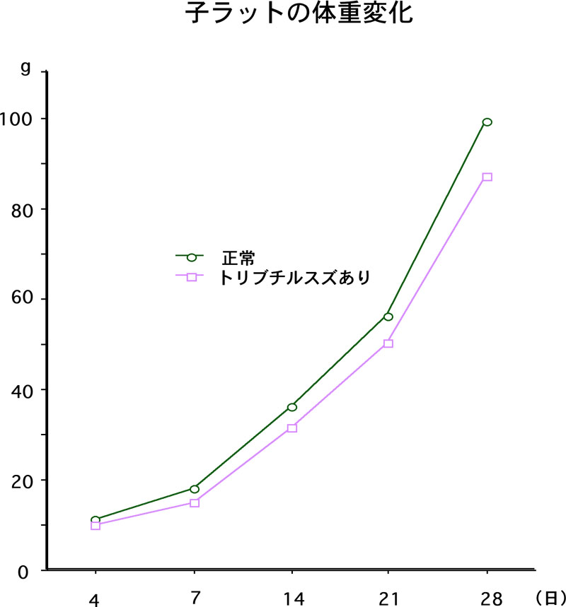 1.トリブチルスズを摂取した母ラットから生まれた子ラットに見られる成長の抑制