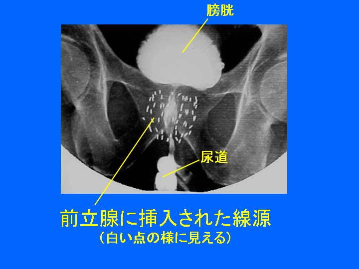 泌尿器科医・放射線治療医・麻酔科医の連携、放射線治療と管理のための装置や治療病棟が必要なので、本治療を実施できる病院は限られる。アメリカでは1980年代から行われて、現在では根治的前立腺摘除術に匹敵する数の患者さんが本治療を受けている。シードを体内に持つ患者さんが町中を歩き回ることになるが、シードの放射線は極めてエネルギーが低く、たとえ患者さんのすぐ横に立っても被曝は全くといってよいほどない。このように周囲の放射線被曝という点でも十分安全な治療法であるが、放射線規制の厳しい日本ではなかなか実施できず、2003年にようやく認可された。