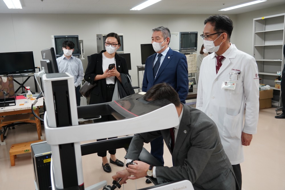 赤司副学長・医学研究院長 挨拶 表敬訪問に先立ち施設見学の様子