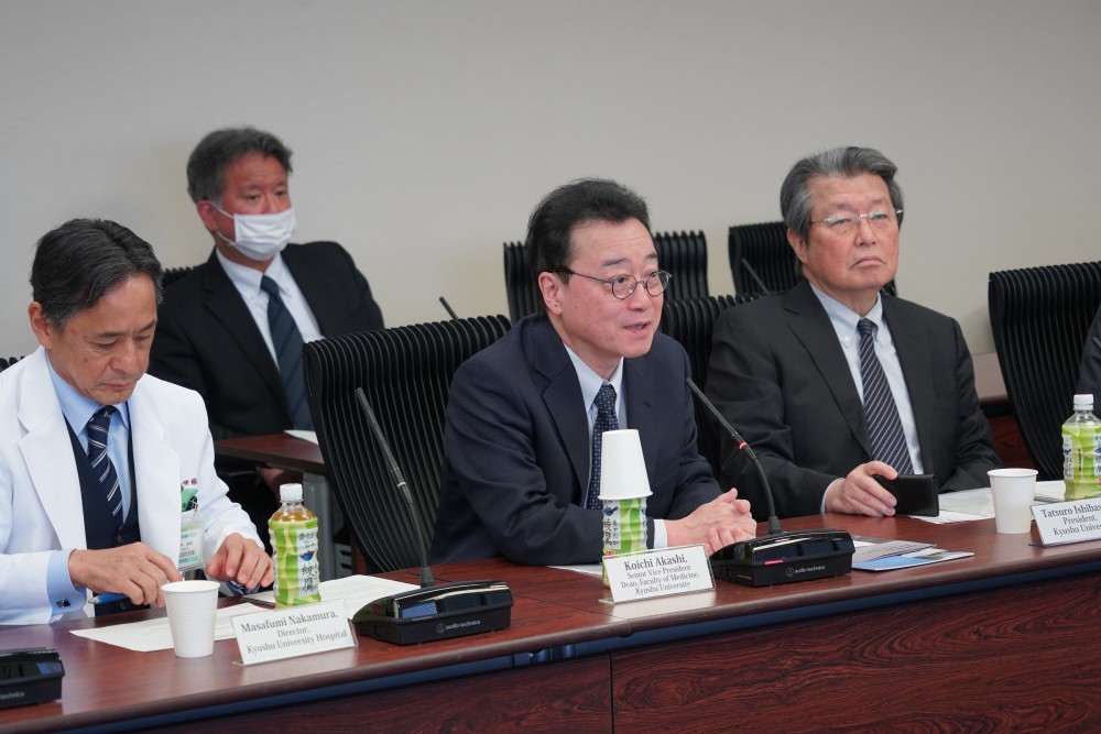 した。その後、各大学の出席者からそれぞれ挨拶が行われ、続けて、大学病院の森山准教授から九州大学病院における国際交