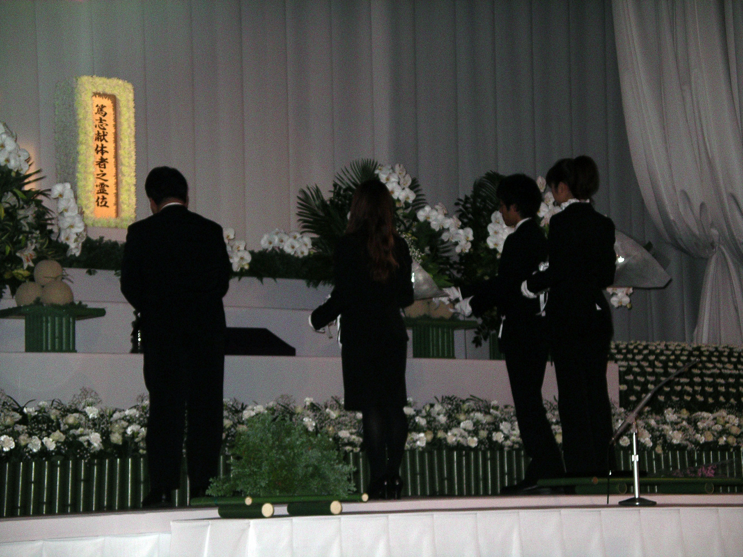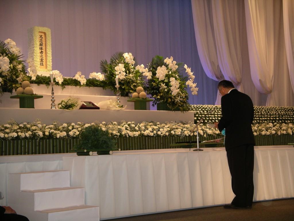 最後に高柳医学部長がお礼の言葉を述べたあと、全員が献花してしめやかに終わりました。