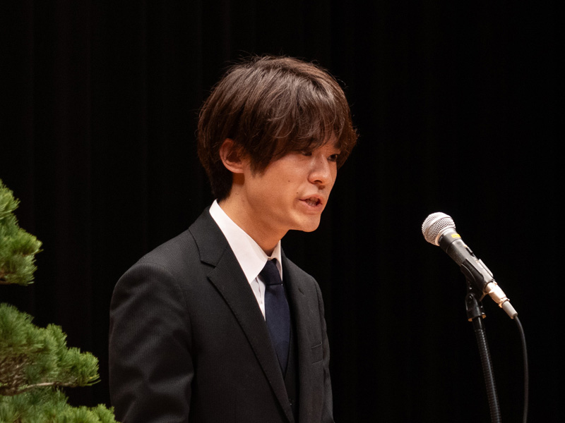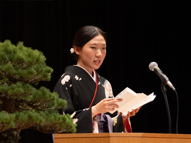 その後、福川さん、尾崎さんが卒業生答辞として、九州大学で学んだ多くの事柄をもとに、我が国の将来の医療および医学研究に貢献したいとの決意を述べました。