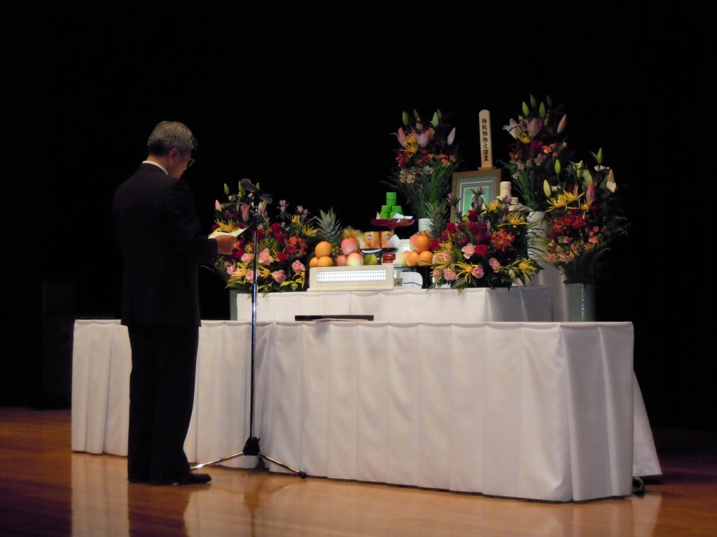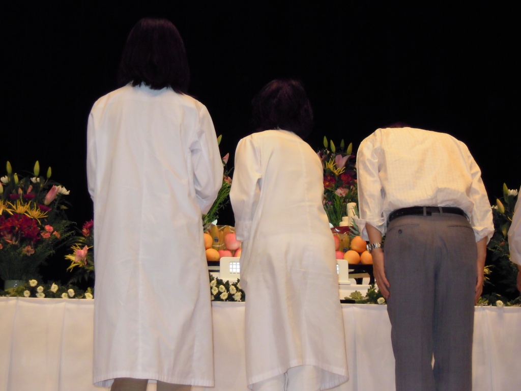平成21年度動物慰霊祭が、動物愛護週間である平成21年9月25日(金)九州大学医学部百年講堂大ホールで約320名の教職員、学生が集まり厳粛に行われました。