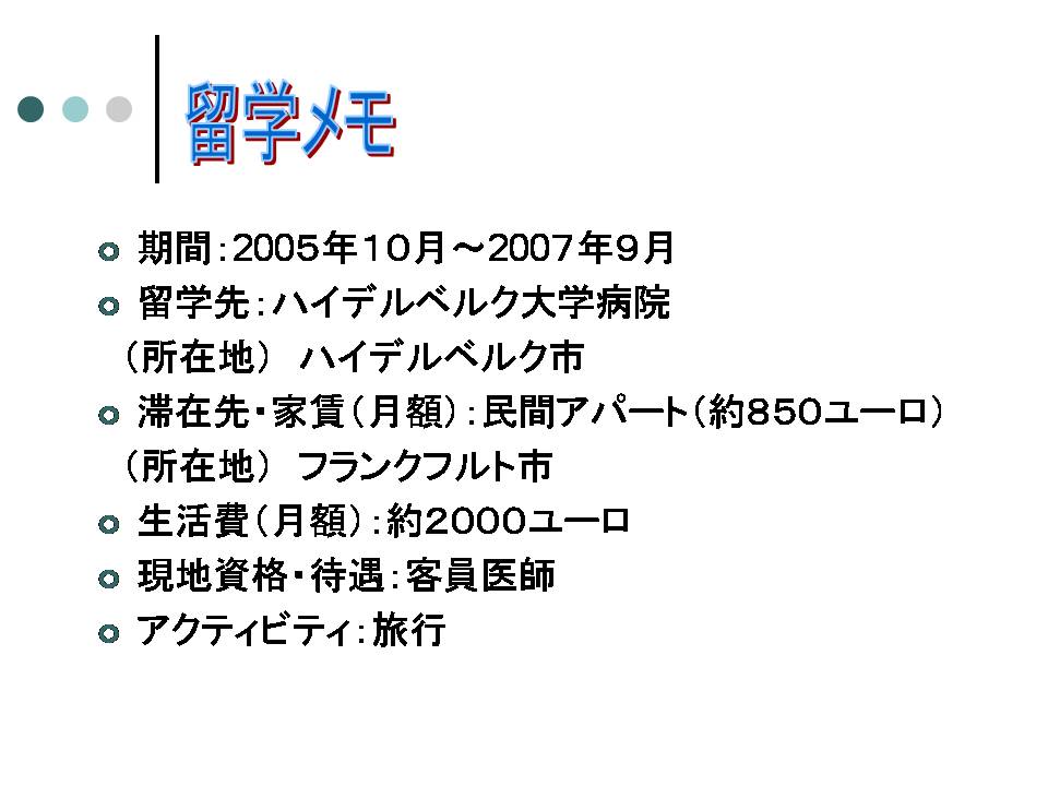 九大病院精神科神経科医師、横田謙治郎さんはその大学病院に2005年10月から約2年間留学した。初めの7か月は主に語学学校で語学を学び、後半は客員医師として。