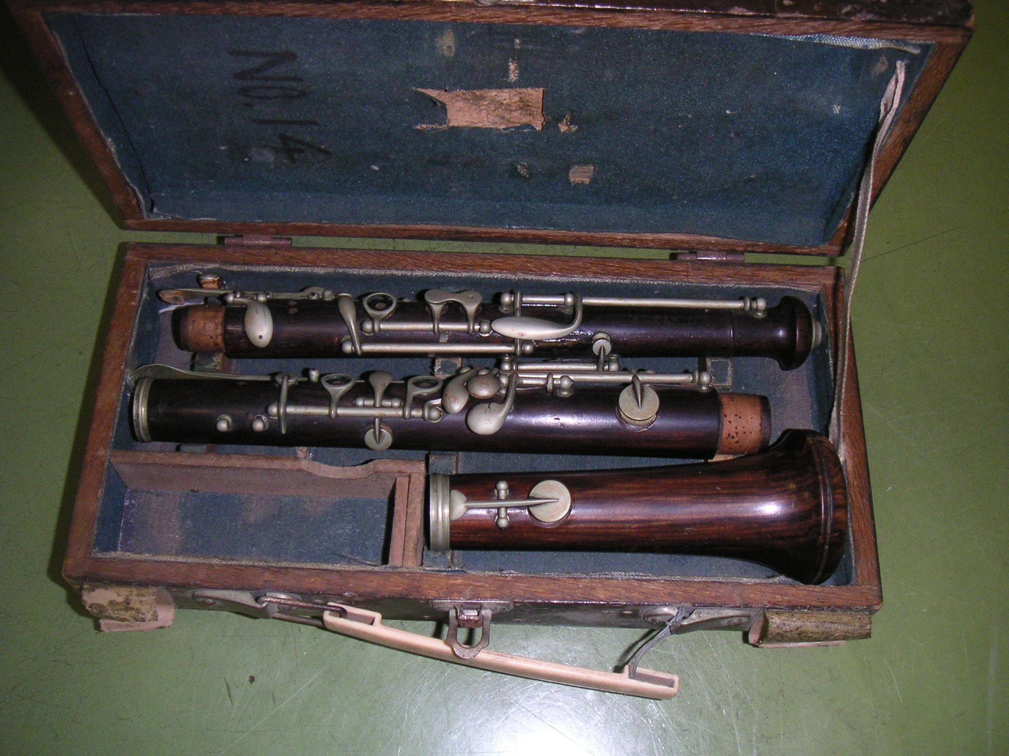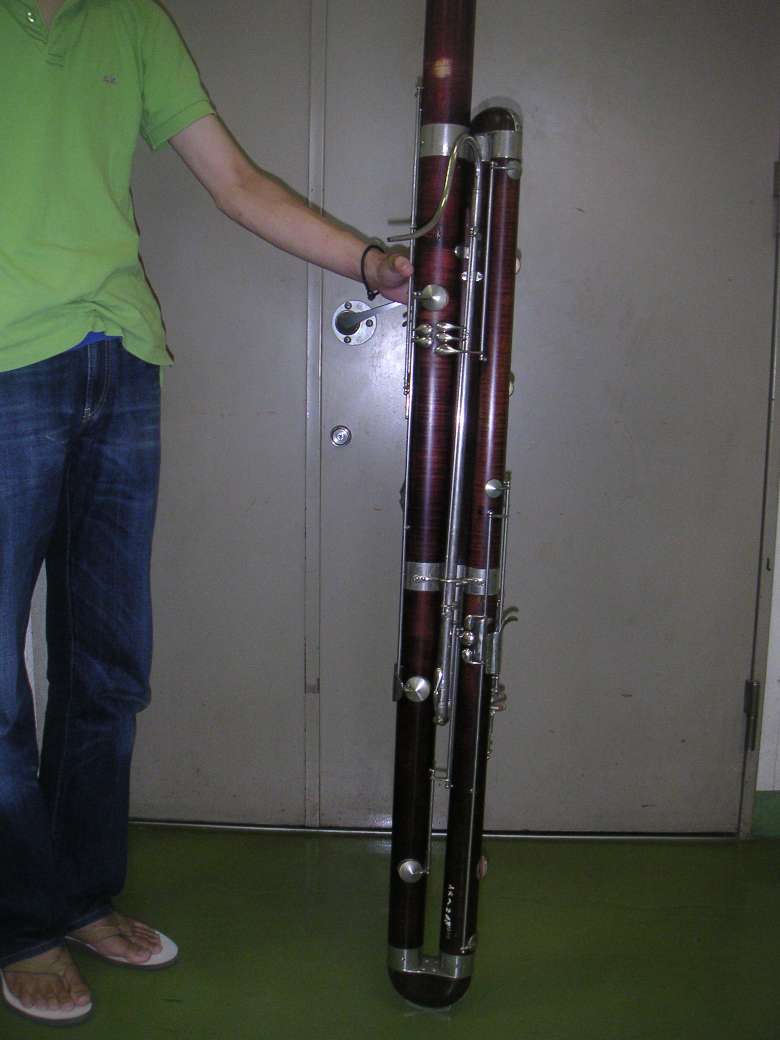 <写真説明> 保存されている榊教授が購入したコントラファゴット(大正14年購入、写真左))とオーボエ(大正9年購入、写真右)。