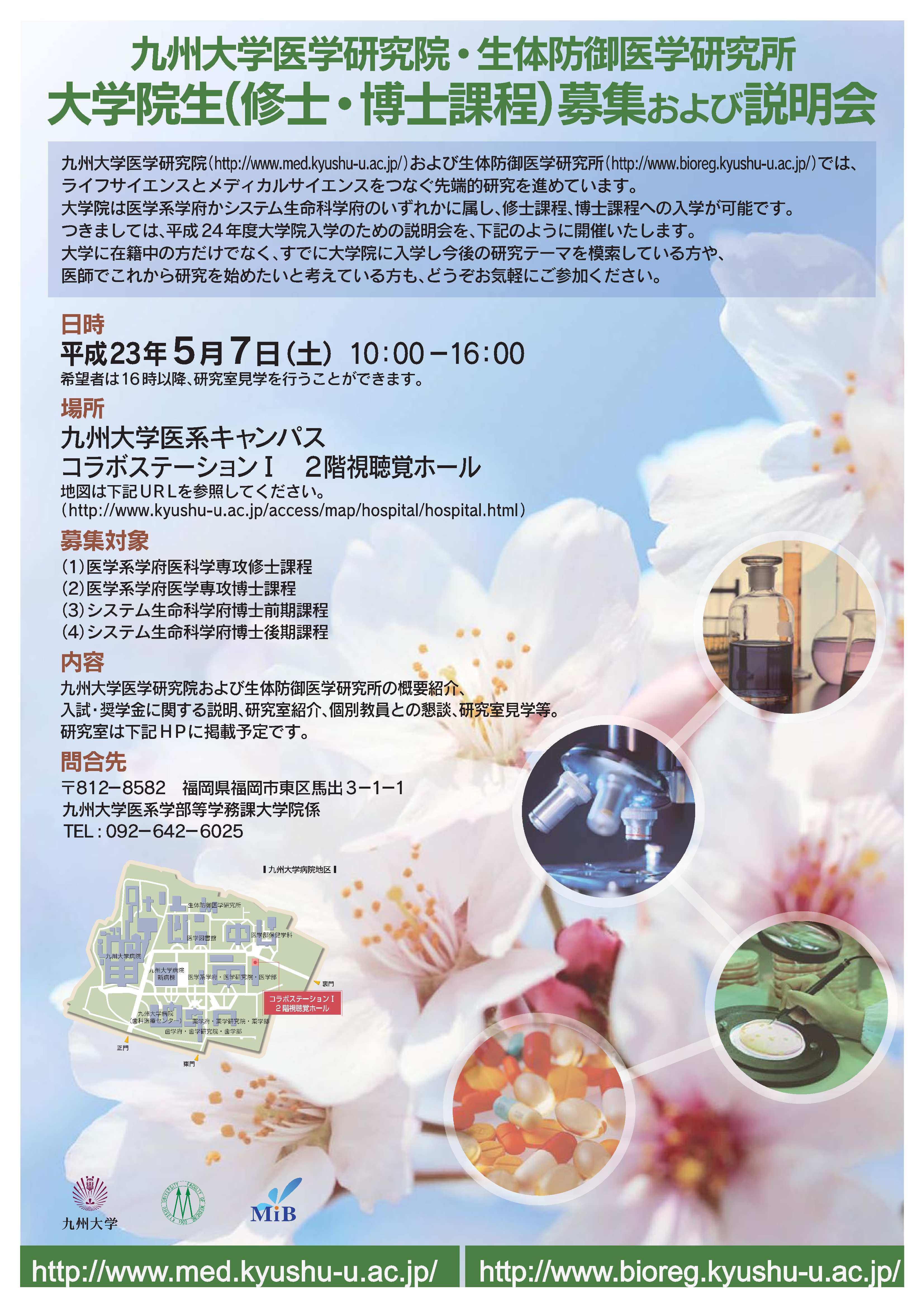 〒812-8582 福岡県福岡市東区馬出3-1-1 九州大学医系学部等学務課大学院係 TEL:092-642-6025