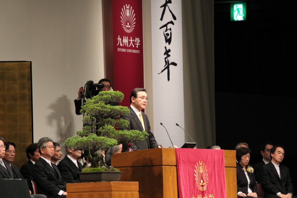 有川総長の告辞では、東日本大震災と原子力発電所の事故に触れ「皆さんも一人一人が、この災害を含め、日本や世界が直面している多くの課題に対して、それぞれの分野の専門家を目指す若者として、何ができるか、何をすべきかも常に意識して、解を模索しながら大学生活を送って頂きたいと思います。」と示されました。
