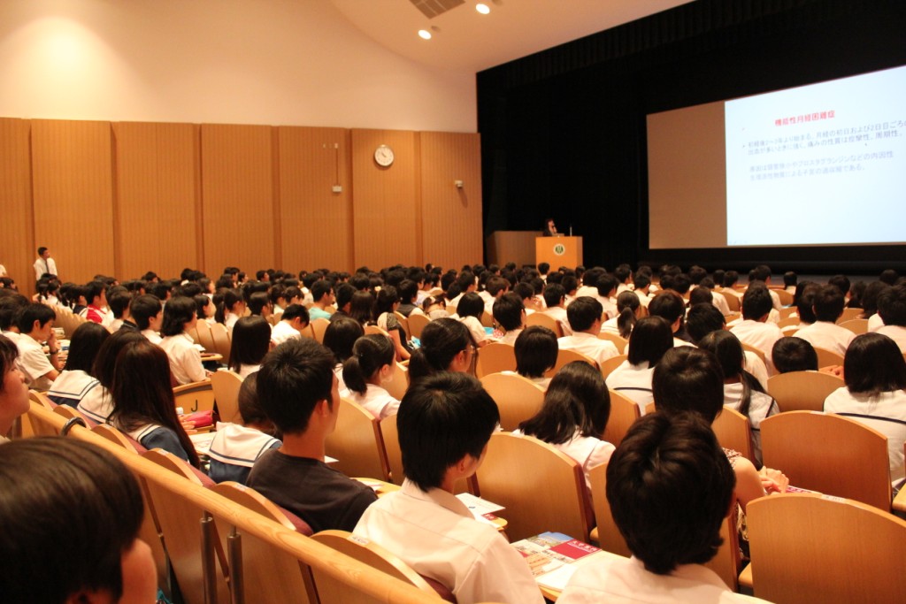 引き続き、医学教育学 吉田素文教授からは、入学後のカリキュラムや、MD-PhDコース、平成26年度入学生から受講する基幹教育についてなど、本学における多様な教育システムの説明がありました。最後に、生殖病態生理分野 加藤聖子教授の講話「女性の一生を診る」がありました。加藤教授は、臨床と研究、医師がどのような生活を送っているのかを、所属である産婦人科を例にとり紹介しました。参加者は説明会を通して医学の知識に触れ、新たな刺激となったようでした。