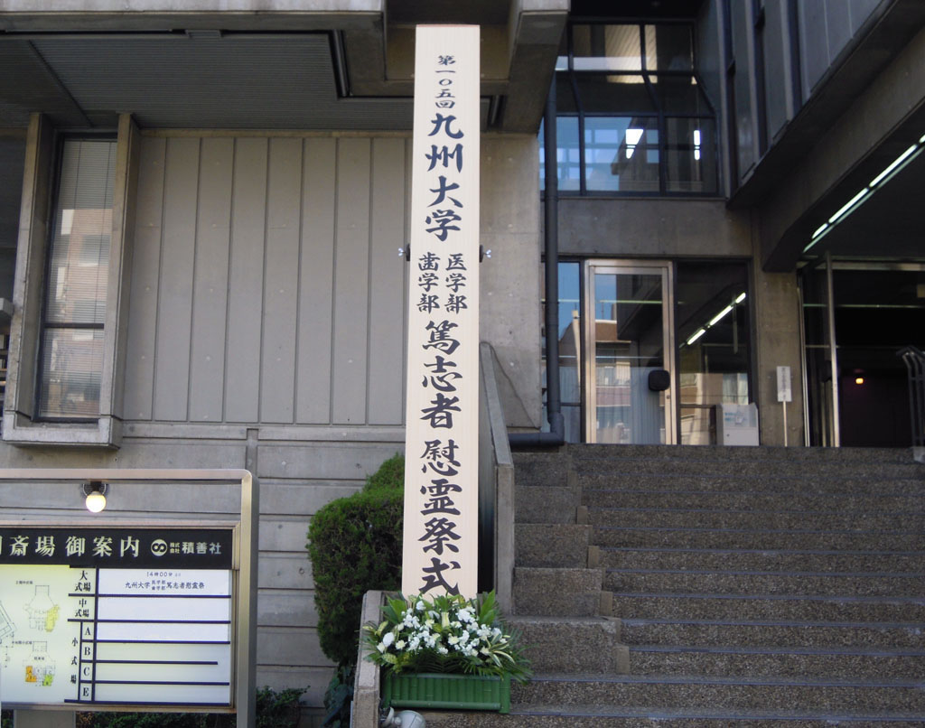 第105回九州大学医学部・歯学部篤志者慰霊祭が、10月26日(土)午後2時から福岡市中央区古小烏、積善社福岡斎場で、遺族や関係者約500人が参列して、無宗教の形式で行われました。