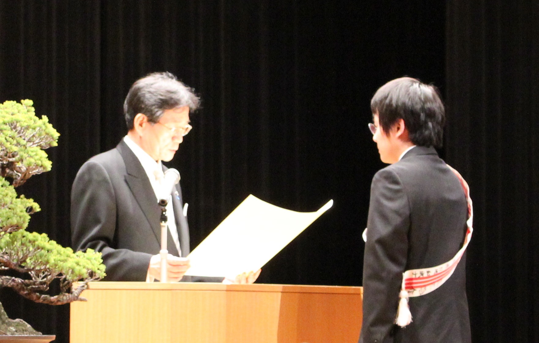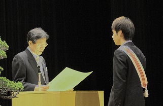 ![]() 学位記授与 医学科代表 山本俊亮さん |