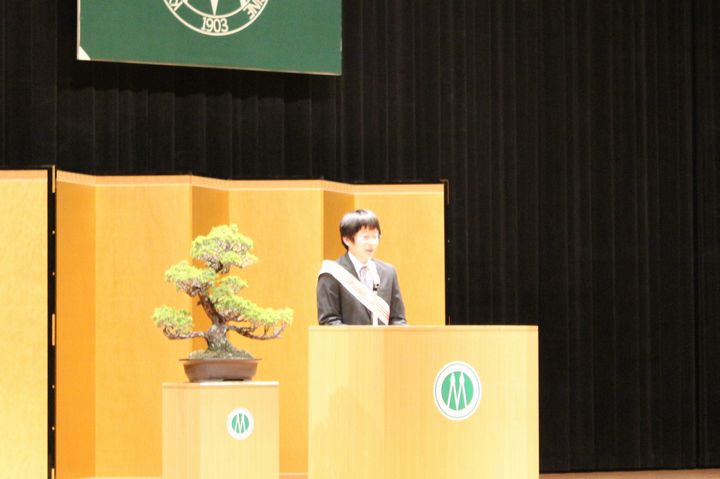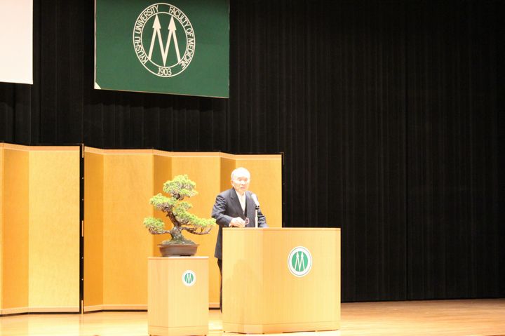 諸先輩方からの祝辞に対し、山本俊亮さんが医学科学生を、そして山下 実さんが生命科学科学生を代表し、答辞を述べました。答辞では、本学ならびに本学部に感謝するとともに、九州大学で学んだ多くの事柄をもとに我が国の将来の医療ならびに医学研究に貢献したいとの決意が述べられました。
