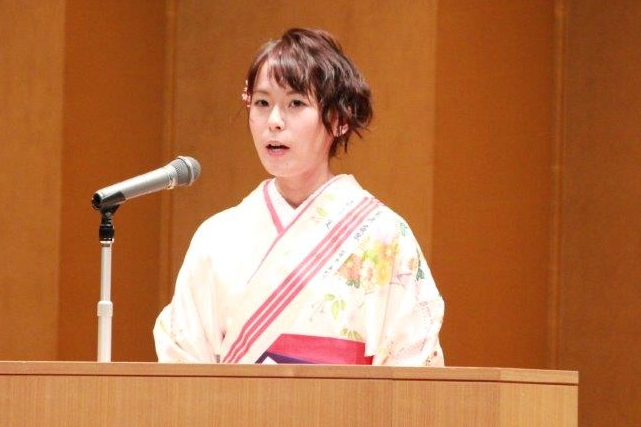 ![]() 生命科学科代表答辞 安元あかりさん |