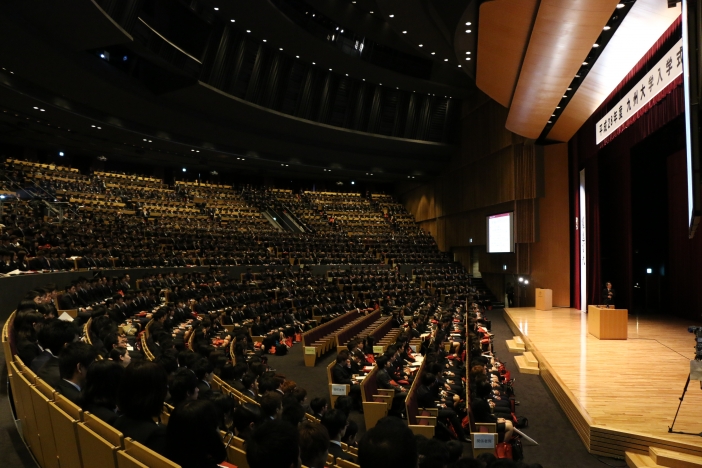 平成28年4月7日(木)13時00分から、九州大学伊都キャンパス 椎木講堂において平成28年度の入学式が行われました。医学部医学科114名(男:101名、女:13名)、生命科学科12名(男:4名、女:8名)を含む、11の学部と21世紀プログラムの2,653名の新入生が九州大学に入学しました。