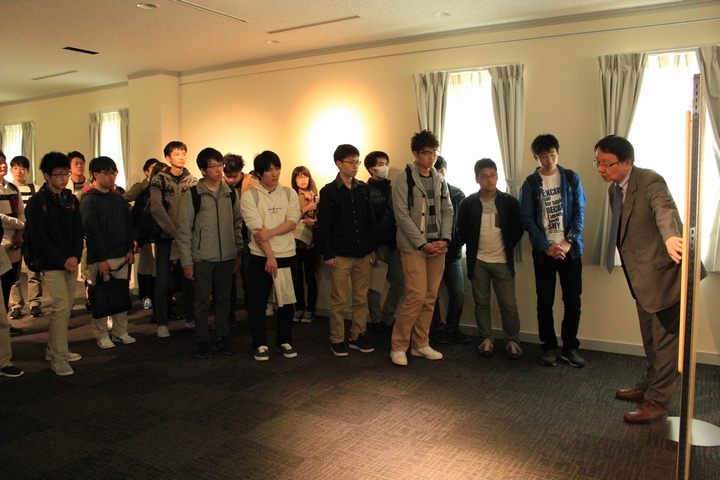 履修解説の後は、再び大ホールにおいて、医学学生係長から医学部在学中の注意事項等が、医学部同窓会から同窓会についての紹介があり、その後、病院キャンパス見学ツアーが催され、グループに分かれ実際にキャンパス内を歩き、教員からキャンパス内の歴史的名所や施設についての説明を受けました。