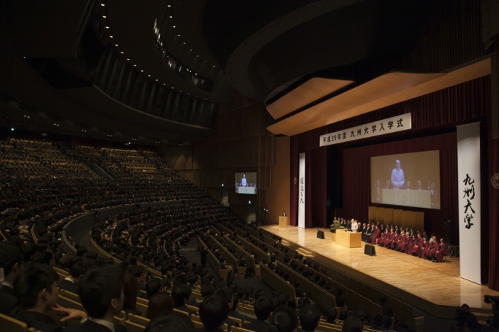 平成29年4月5日(水)13時00分から、九州大学伊都キャンパス 椎木講堂において平成29年度の入学式が行われました。医学部医学科112名(男:92名、女:20名)、生命科学科14名(男:7名、女:7名)を含む、11の学部と21世紀プログラムの2,635名の新入生が九州大学に入学しました。