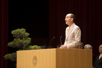 また,来賓として,国文学研究資料館のロバート・キャンベル館長からエンパシー(共感力)の定義と重要性について説明いただいた後,「本物の知性が何か,それを拓く問いかけをこのキャンパスで見つけてほしい」と新入生を激励する祝辞をいただきました。