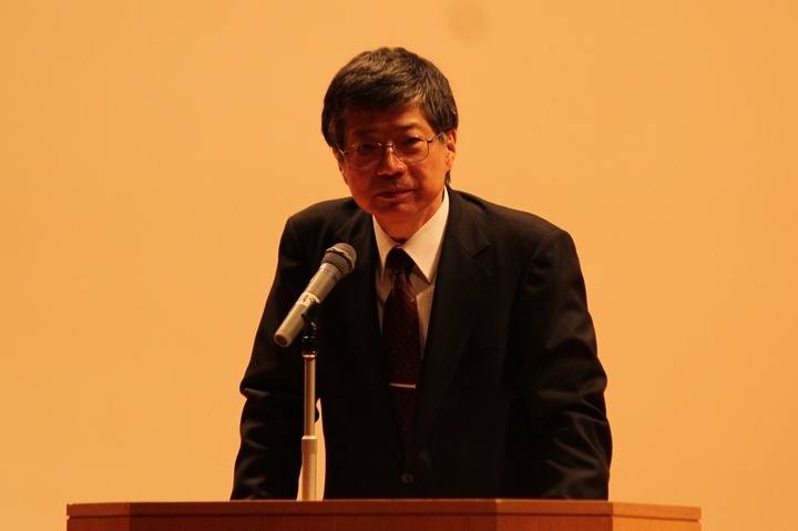 久保千春総長が新入生への告辞で、「“広い学問への興味”,“国際的視野と活動”,“政治への関心”の三つのことをお願いするとともに,失敗を恐れず,チャレンジ精神で学生生活を送ってください」と述べました。