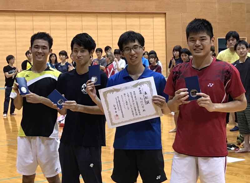 試合本番では、部員全員でコートの周りを囲んでの応援とアドバイスで盛り上げ、ダブルス、シングルスどの試合も1球1球諦めない粘り強い気迫溢れるプレイでそれぞれが役割を全うしました。その結果、終始よい雰囲気で団体戦を戦い抜くことができ、1つの関門と思われた3回戦を3-0のストレートで勝利すると、その勢いのまま準々決勝、準決勝と勝ち進んでいき、『九州大学』というチームで掴み取った準優勝でした。